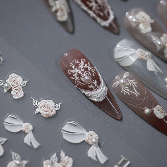 White Roses and Pearls 5D Nail Art Stickers