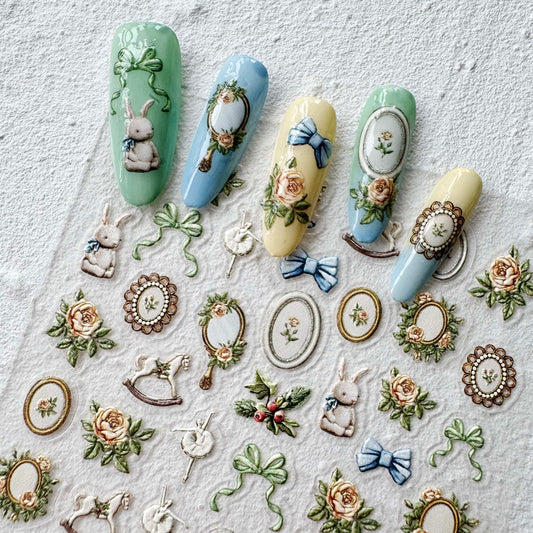 Fairytale Nail Art Stickers, Retro Vintage Vibes Cute Items DIY Stickers