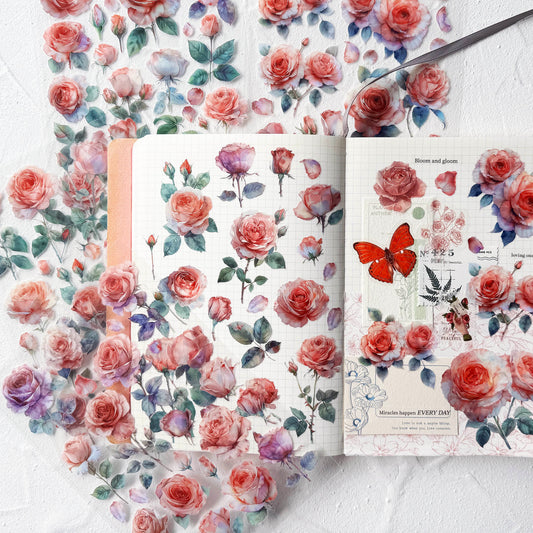 Watercolor Roses Stickers for Scrapbooking, Self-Adhesive Flowers Stickers Journal Embellishment Supplies for Art Craft Decorations